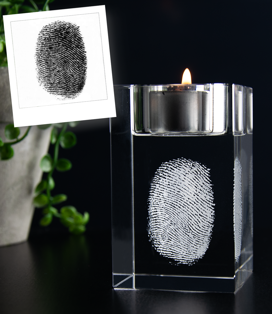Een theelicht van kristal glas gegraveerd met een foto van dat speciale moment, dierbare of een logo van het bedrijf, bijna elke creatieve uitspatting is mogelijk. Het enige wat u hiervoor hoeft te doen is een mooie scherpe foto of logo aan te leveren. Uiteraard is een tekst ook mogelijk.